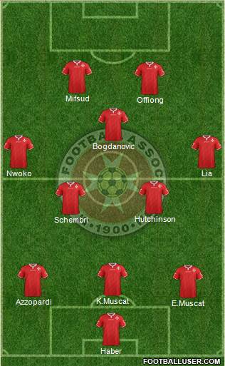 Galea · Pepe · Muscat · Brown · Beerman · Teuma · Kristensen · Guillaumier · Jones · Satriano · Gambin