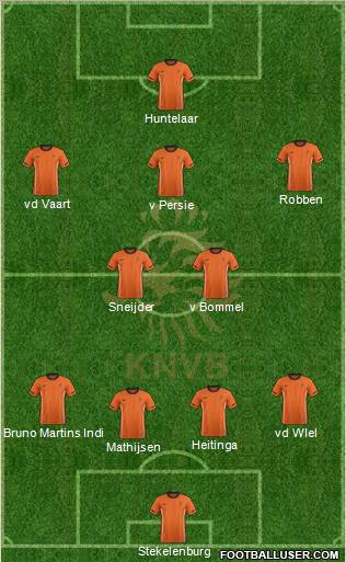 Stekelenburg · Heitinga · Mathijssen · Emanuelson · van der Wiel · van Bommel · van der Vaart · van Persie · Afellay · Robben · Huntelaar