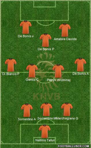Huntelaar · Robben · Affelay · Van Persie · Van De Vaart · Van Bommel · Emanuelson · Van Der wiel · Mathijsen · Heitinga · Stekelenburg