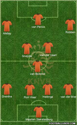 Stekelenburg · Heitinga · Mathijsen · Ooijer · van der Wiel · Van Bommel · Robben · Emanuelson · Sneijder · van Persie · de jong