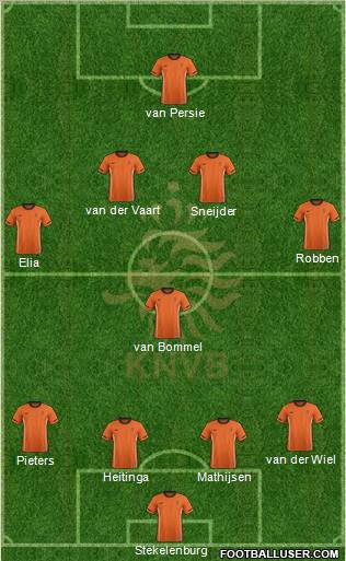 1. Stekelnburg · 6. van Bommel · 3. Heitinga · 2. vd Wiel · 5. Emanuelson · 8. Strootman · 23. van der Vaart · 10. Sneijder · 11. Robben · 7. v. Persie · 9. Huntelaar