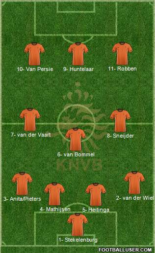 Mathijsen · Heitinga · Pieters · Greg · De Jong · Emmanuelson · VDV · Sneijder · RVP · Huntelaar