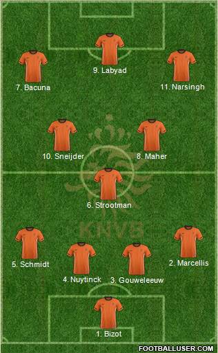 De Jong · Afellay · Robben · Sneijder · Elia · De Jong · Emanuelson · Van Der Wiel · Maduro · Bruma · Krul