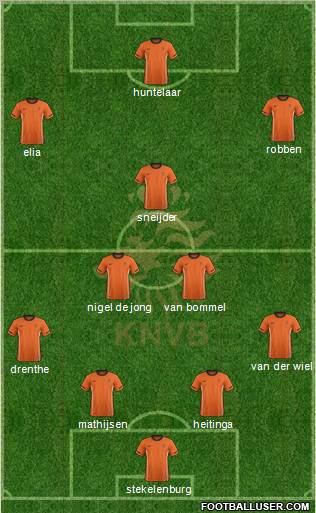 Stekelenburg · Mathijsen · Heitinga · Van Der Wiel · Emmanuelson · Sneider · Van Bommel · Van Der Vaart · Robben · Huntelaar · Van Persie