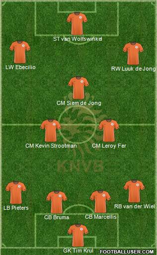 Stekelenburg · Heitinga · Van der Wiel · Anita · mathijssen · Van Bommel (C) · Sneijder · Van der Vaart · Van Persie · Robben · Elia