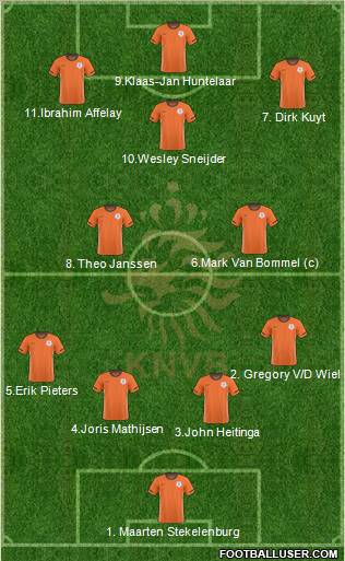 Stekelenburg · Mathijsen · Heitinga · Pieters · Van der Wiel · De Jong · Van der Vaart · Sneijder · Afellay · Robben · V. Persie