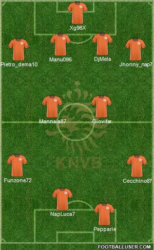 Kuyt · Huntelaar · Van Persie · Elia · De Zeeuw · Van der Vaart · Van Bommel · Heitinga · Mathijsen · Van Der Wiel · Stekelenburg