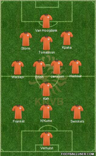 Steckelenburg · Mathisen · Heitinga · Van Bronckhorst · Van Der Wiel · De Jong · Van Bommel · Van Der Vaart · Sneijder · Van Persie · Robben