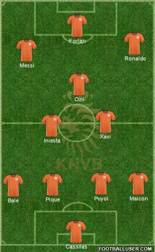 Maarten Stekelenburg · Gregory van der Wiel · Joris Mathijsen · Erik Pieters · John Heitinga · Mark van Bommel · Rafael van der Vaart · Wesley Sneijder · Arjen Robben · Ibrahim Affelay · Robin van Persie