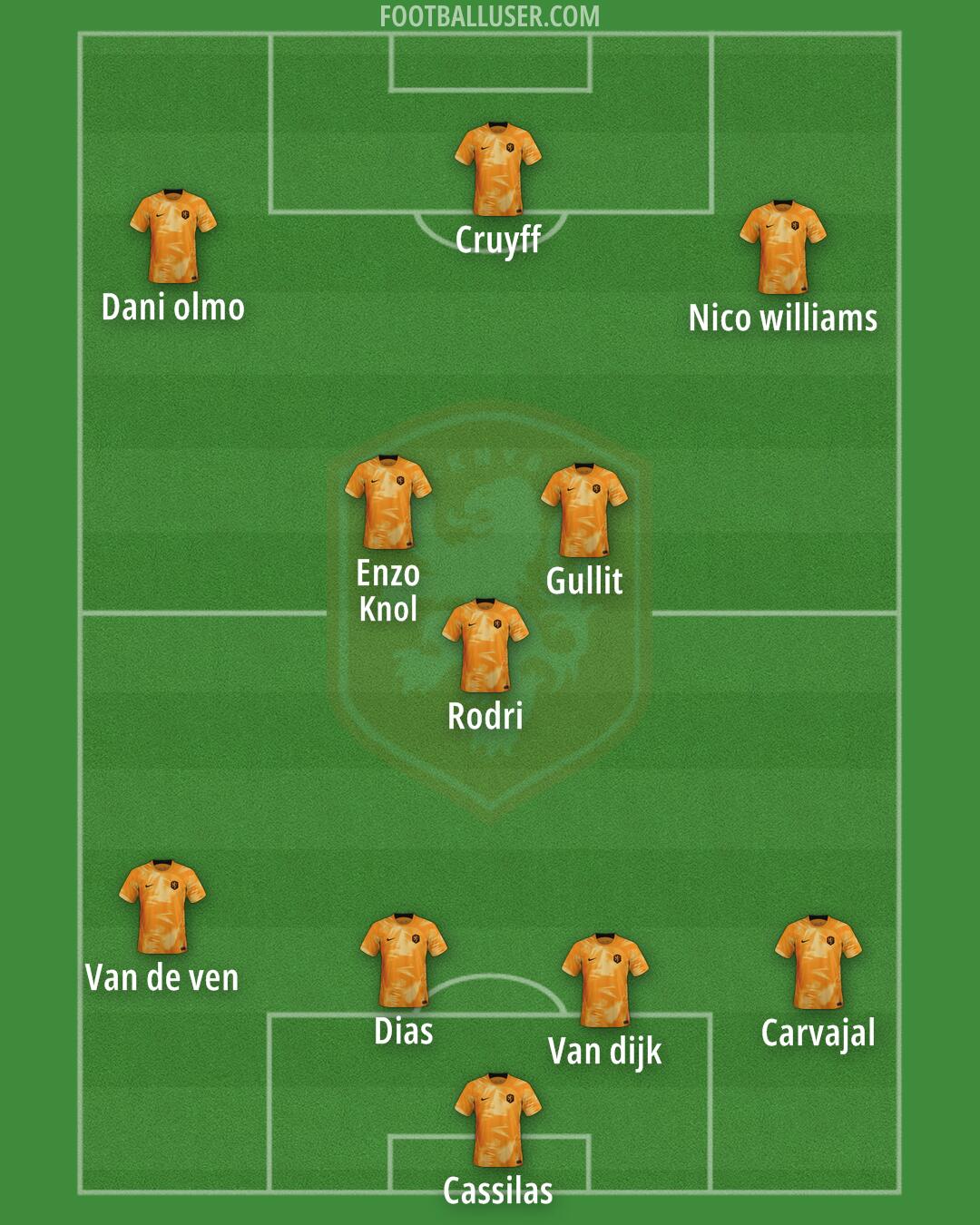 B.Verbruggen · V.van Dijk (C) · J.van Hecke · M.van de Ven · D.Dumfries · F.de Jong · T.Reijnders · T.Koopmeiners · C.Gakpo · M.Depay · X.Simons