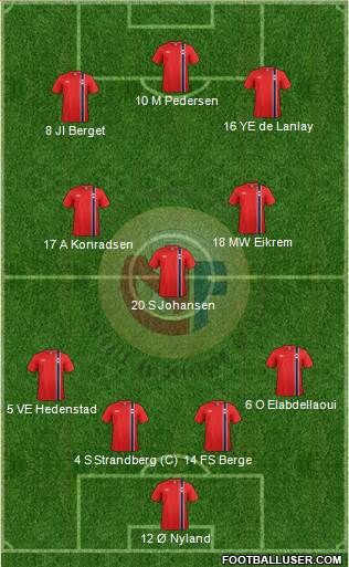 Nyland · Hangeland · Nordtveit · J. Riise · Linnes · Tettey · Konradsen · Skjelbred · Berget · Braaten · Abdellaoue