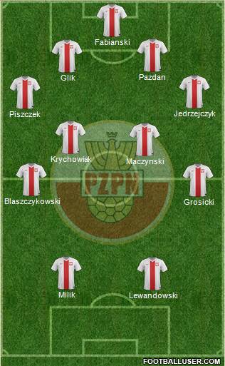 Fabianski · Pazdan · Glik · Jedrzejczyk · Piszczek · Maczynski · Krychowiak · Blaszczykowski · Grosicki · Milik · Lewandowski