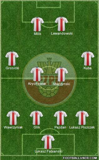 Фабиански · Паздан · Глик · Енджейчик · Пищек · Мачиньски · Крыховяк · Зелиньски · Гросицки · Блащиковски · Левандовски