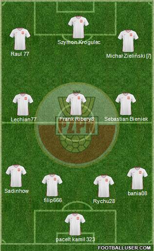 W. Szczęsny · Dudka · Jodłowiec · Głowacki · Ł. Piszczek · Murawski · Mierzejewski · Kuba · R. Majewski · L. Obraniak · Lewandowski