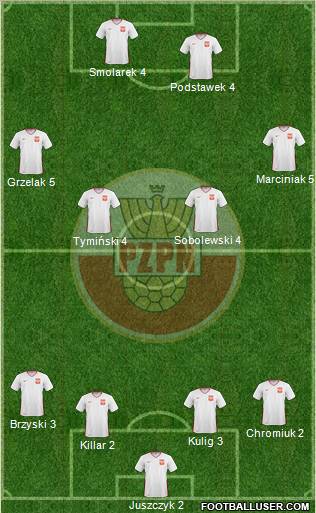 Szczęsny · Piszczek · Wawrzyniak · Wojtkowiak · Jodłowiec · Dudka · Murawski · Błaszczykowski · Grosicki · Mierzejewski · Lewandowski