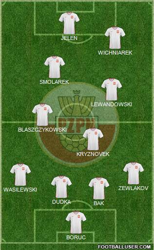 Fabiański · Perquis · Arboleda · Boenisch · Piszczek · Murawski · Matuszczyk · Peszko · Kuba · Obraniak · Lewandowski