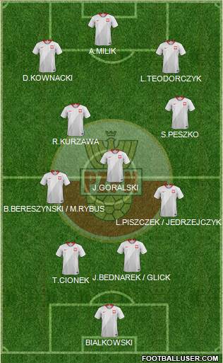 Szczesny · Cionek · Pazdan · Rybus · Piszczek · Zielinski · Krychowiak · Milik · Blaszczykowski · Grosicki · Lewandowski