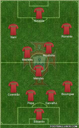 Eduardo · Alves · Pepe · Bosingwa · Coentrao · Meireles · Moutinho · Nani · Ronaldo · Almeida · Liedson