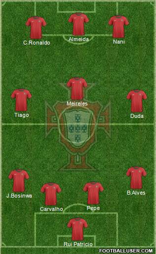 Rui Patricio · Pepe · Bruno Alves · Joao Pereira · Fabio Coentrao · Miguel Veloso · Danny · Joao Moutinho · Cristiano Ronaldo · Nani · Hugo Vieira