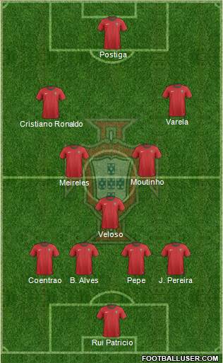 Rui Patrício · Beto · Ricardo · Bruno Alves · Steven Vitória · João Pereira · Antunes · Fábio Coentrão · Pepe · Luís Neto · Manuel Fernandes · André Leão · João Moutinho · Tiago Rodrigues · João Mário · Raul Meireles · Josué · Cristiano Ronaldo · Bruma · Nani · Vieirinha · Éder · Hélder Postiga
