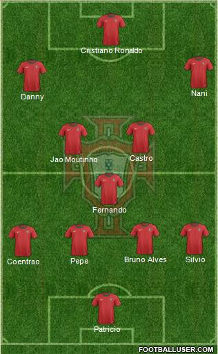 Eduardo · Alves · Coentrao · Pepe · Pereira · Meireles · Moutinho · Veloso · Nani · Cristiano Ronaldo · Postiga