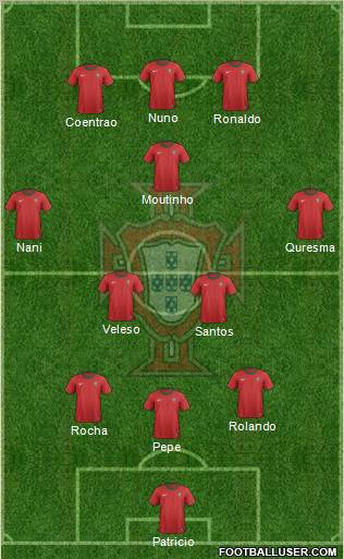 Rui Patricio · Rolando · Bruno Alves · Pepe · F.Coentrao · Joao Pereira · Meireles · Quaresma · Nani · Varela · Ronaldo