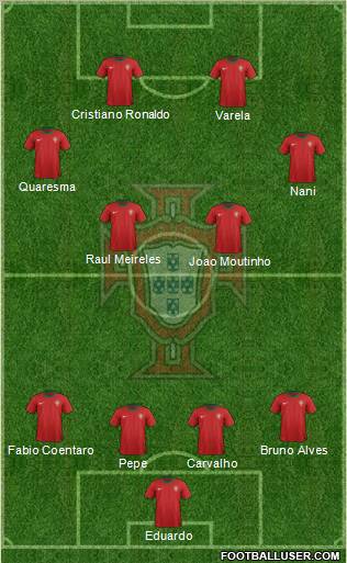 Eduardo · Bruno Alves · Pepe · Fabio Coentrao · Joao Pereira · Miguel Veloso · Joao Moutinho · Raul Meireles · Nani · Cristiano Ronaldo · Nelson Oliveira