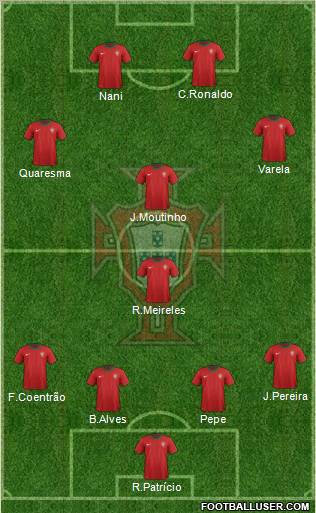 Rui Patricio · Pepe · Bruno Alves · Fabio Coentrao · Joao Pereira · Raul Meireles · Joao Moutinho · Miguel Veloso · Quaresma · Nani · Cristiano Ronaldo