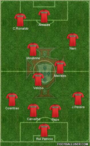 Patricio · Pepe · Carvalho · Coentrao · Pereira · Meireles · Fernandes · Simao · Quarejma · Hugo Almeida · Cristiano Ronaldo