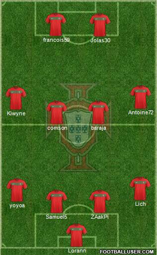 Eduardo · Alves · Pepe · Coentrao · Pereira · Veleso · Moutinho · Meireles · Ronaldo · Nani · Postiga