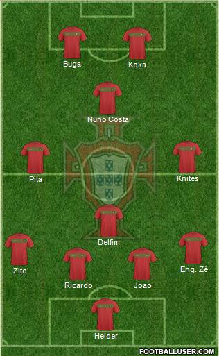 Edouardo · Carvalho · Pepe · Coentrao · Joao Pereira · Martins · Moutinho · Meireles · Ronaldo · Nani · Hugo Almeida