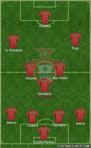C.Ronaldo · R.Quaresma · Nani · R.Meireles · J.Moutinho · R.Micael · J.Pereira · F.Coentrao · R.Carvalho · B.Alves · Beto