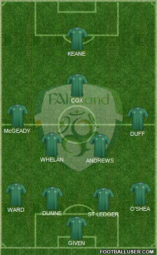 Shay Given · Sean St Ledger · Richard Dunne · Stephen Ward · John O Shea · Glenn Whelan · Keith Andrews · Damien Duff · Aiden McGeady · Robbie Keane · Simon Cox