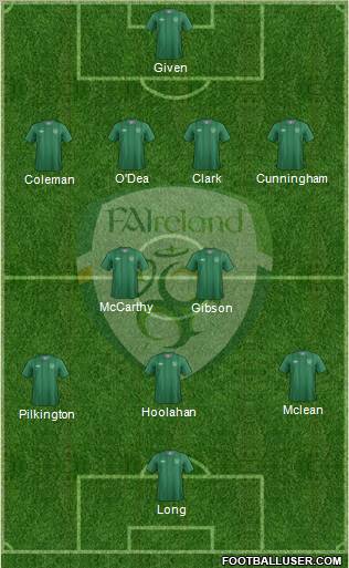 Keane · Hoolahan · McGeady · McClean · Gibson · Fahey · Kelly · Clark · O'Shea · Dunne · Given