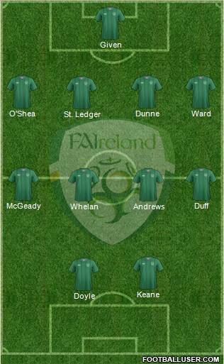 Doyle · Robbie Keane · Duff · McGeady · Whelan · Andrews · O´Shea · Ward · Ledger · Dunne · Given