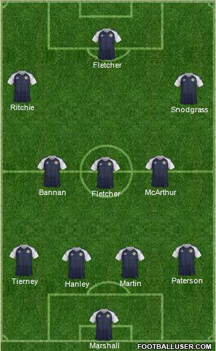Archer · Hamilton · McLaughlin · Bain · Souttar · Hendry · Lindsay · Hanley · Tierney · Paterson · Robertson · Ralston · Kingsley · Palmer · Love · Douglas · Mallan · Fulton · Macleod · McArthur · Henderson · Gilmour · McGinn · Bridcutt · J. Paterson · Wright · McKay · Mackay-Smith · Walker · Burke · Forrest · McBurnie · Griffiths · Hardie, ...