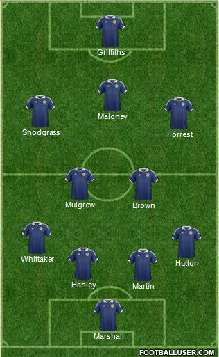 1.Jim Leighton (1984) · 2.Danny McGrain (1977) · 3.Eric Caldow (1960) · 5.Billy McNeill (1969) · 4.Billy Bremner (1973) · 11.Graeme Souness © (1983) · 7.Jimmy Johnstone (1967) · 6.Jim Baxter (1963) · 8.Kenny Dalglish (1983) · 10.Denis Law (1964) · 9.Allister McCoist (1992)