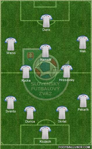 Kozacik · Skrtel · Durica · Svento · Pekarik · Duda / Pecovsky · Kucka · Hamsik · Weiss · Mak · Duris / Nemec