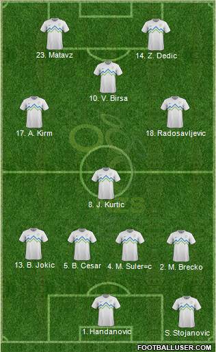 Handanovic · B. Cesar · Knavs · Jokic · Brecko · Koren · Ilicic · Acimovic · Zahovic · Matavz · Novakovic