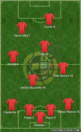 1.casillas · 5.ally ali · 4.c.macherno · 3.ramos · 2.pique · 8.xavi · 14.alonso · 6.bussquest · 21.silva · 22.reyes · 7.villa · 9.torres · 21.gudjohnsen · 7. navas · 22.pedro · 14.fabregas · 6.inesta · 5.capdevill · 3.puyol · 4.pablo · 2.ahmad ali · 1.valdes