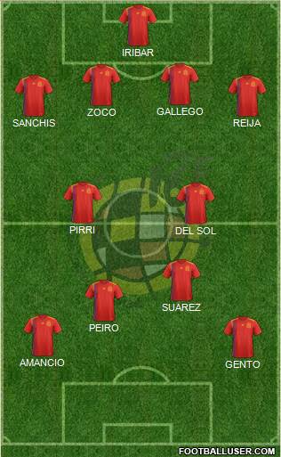 가이즈카 (멘디에타) · 라울 (곤잘레스) · 다비드 (실바) · 챠비 (에르난데스) · 안드레스 (이니에스타) · 로드리 · 다니 (카르바할) · 조르디 (알바) · 세르히오 (라모스) · 카를레스 (푸욜) · 이케르 (카시야스)