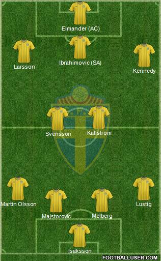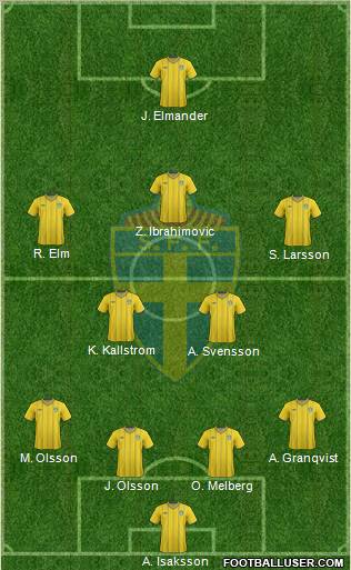 Isaksson · Mellberg · Granqvist · Martin Olsson · Lustig · Kallstrom · Svensson · Elm · Larsson · Toivonen · Ibrahimovic