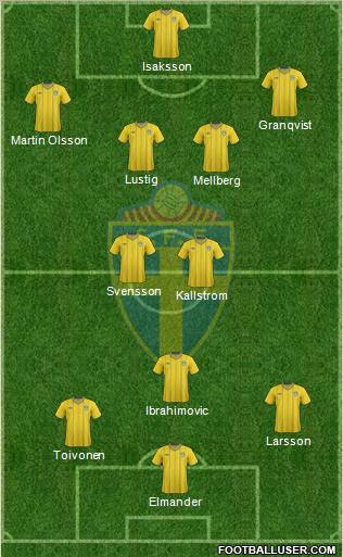 Isaksson · Mellberg · Granqvist · Olsson · Lustig · Elm · Holmen · Källström · Larsson · Ibrahimovic · Elmander