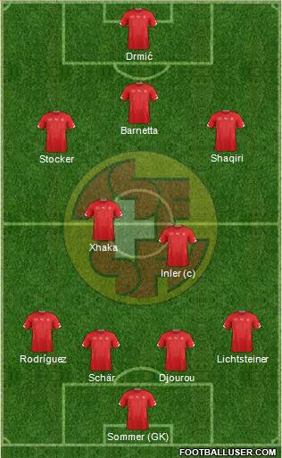 Sommer · Klose · Djourou · Rodriguez · Lichtsteiner · Inler · Behrami · Stocker · Shaqiri · Drmic · Mehmedi