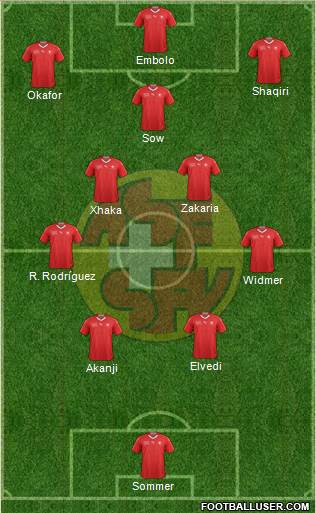 Sommer/Kobel/Omlin · Akanji/Zesiger · Elvedi/Schär/Fernandes · Rodríguez/Schmid · Lotomba/Widmer · Zakaria/Jashari · Sow/Freuler/Males · Xhaka/Imeri · Rieder/Shaqiri · Okafor/Amdouni/Seferovic · Embolo/Vargas