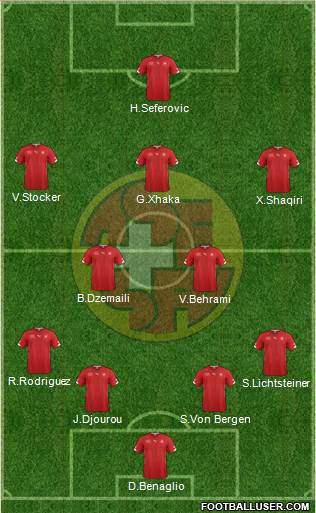 Sommer · Senderos · Von Bergen · Lichtsteiner · Rodriguez · Dzemaili · Behrami · Shaqiri · Xhaka · Stocker · Seferovic