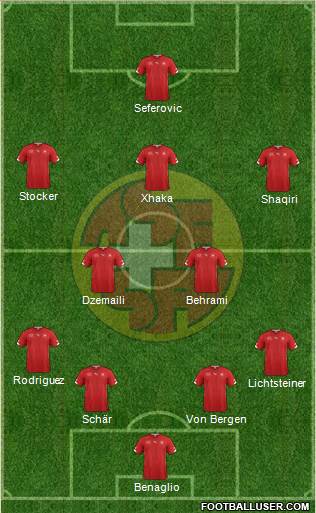D.Benaglio · J.Djourou · S.Von Bergen · S.Lichtsteiner · R.Rodriguez · V.Behrami · B.Dzemaili · X.Shaqiri · G.Xhaka · V.Stocker · H.Seferovic