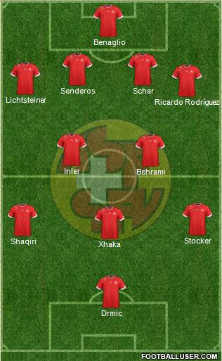 Benaglio · Senderos · Schar · Rodriguez · Lichtsteiner · Inler · Behrami · Xhaka · Stocker · Shaqiri · Drmic