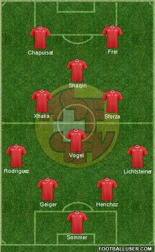 Sommer · Muller · Akanji · Lichtsteiner · Ricardo Rodríguez · Vogel · Inler · Sforza · Sutter · Frei · Chapuisat