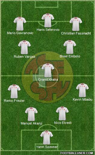 SOMMER · DJOUROU · SCHAR · R. RODRIGUEZ · LICHTSTEINER · XHAKA · BEHRAMI · MEHMEDI · SHAQIRI · DZEMAILI · SEFEROVIC